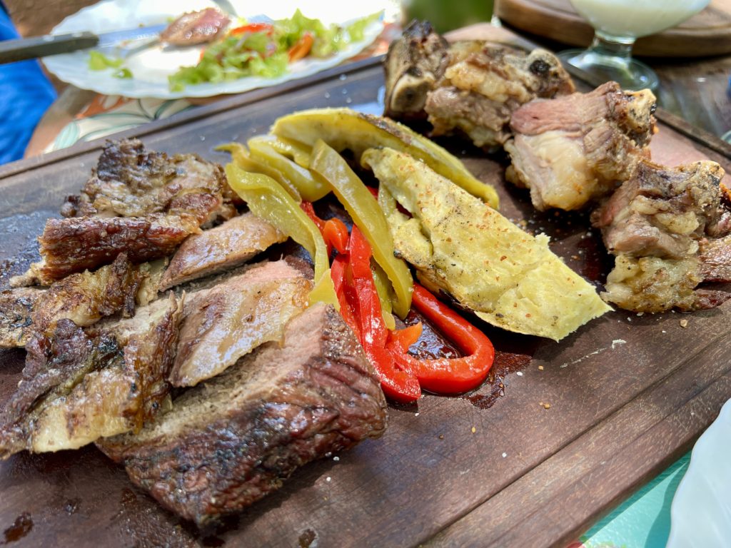 The barbecue did not disappoint and I was able to experience Asado Argentino a la parrilla, or “on the grill,” in this breathtaking environment. An “asado” is the social event surrounding the barbeque and always involves several types of meat that come off the grill at different times over the course of the meal. The meats are never marinated, only seasoned heavily with salt (and some fresh lemon juice on the pork belly). We enjoyed beef ribs and fillet, pork belly (my favorite!), chorizo (mixed coarse-grained meat sausage, not to be confused with the spiced sausage of the same name) and blood-sausage (not my cup of tea in terms of texture).