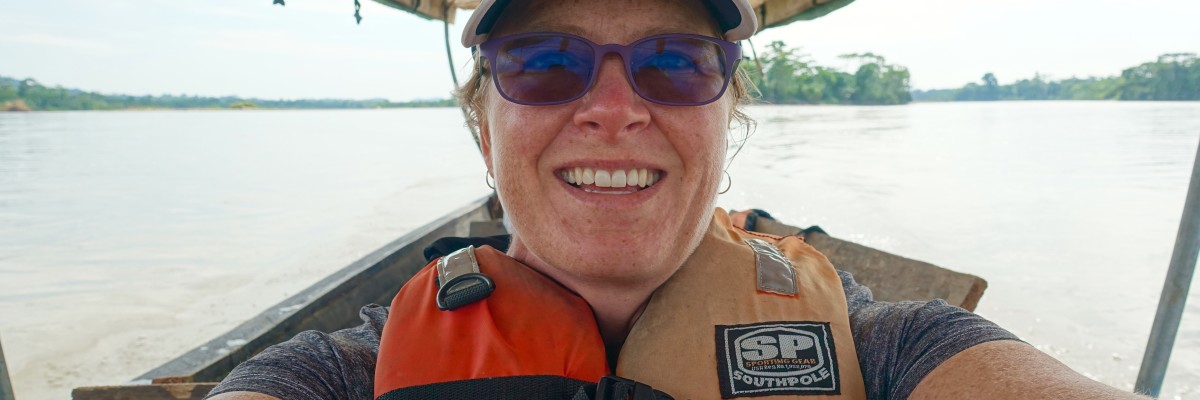 Jorgen, our trusted guide, paddling us to the shore of the Napo River.