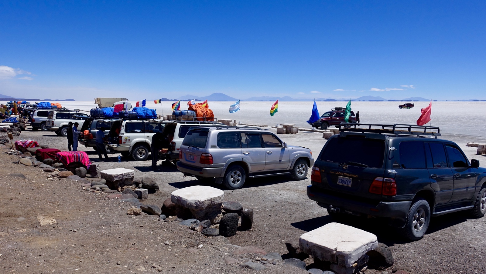 Next thing you knew we were piled into a waiting Toyota Land Cruiser with our Bolivian driver, Freddie, and guide, Larissa. Luggage in the back, extra gas tanks strapped to the roof and Glenn, Chris and I wedged into the back seat.