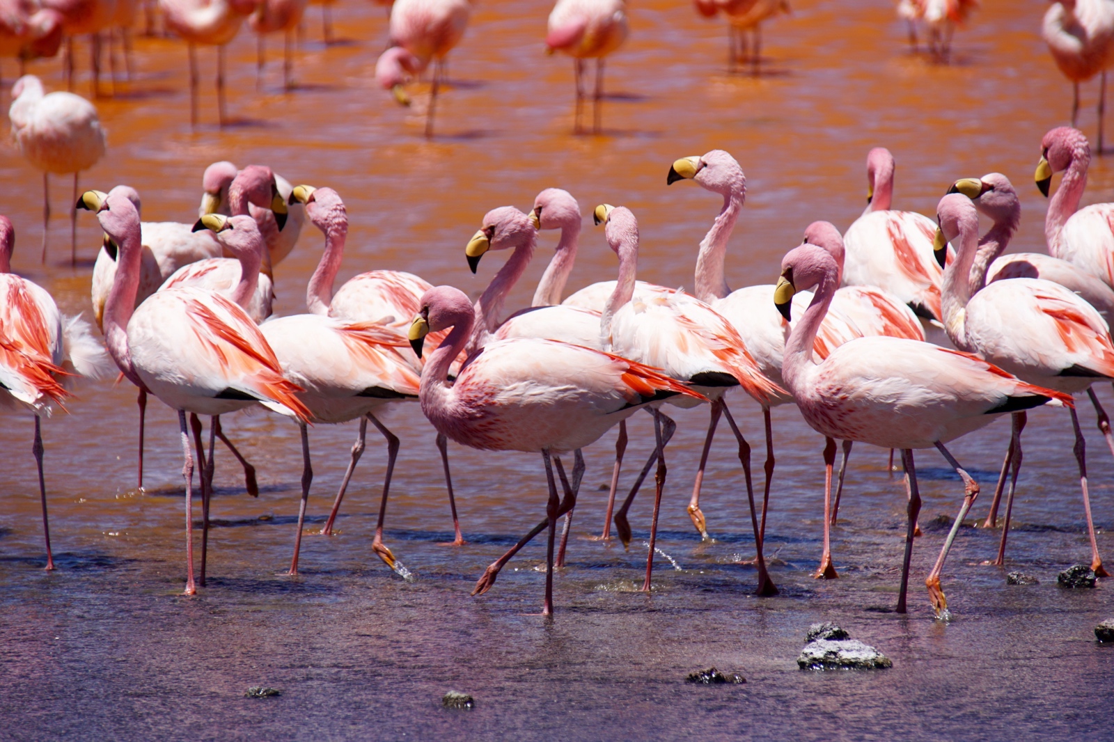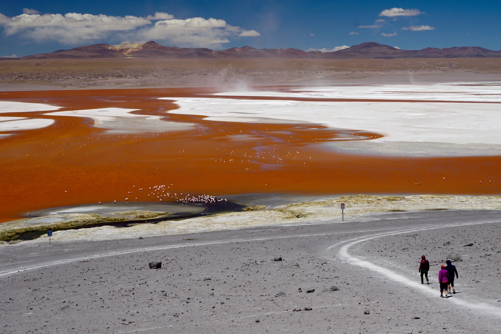 Pink flamingos in the red lagoon, quite a sight! (Photo by Chris)