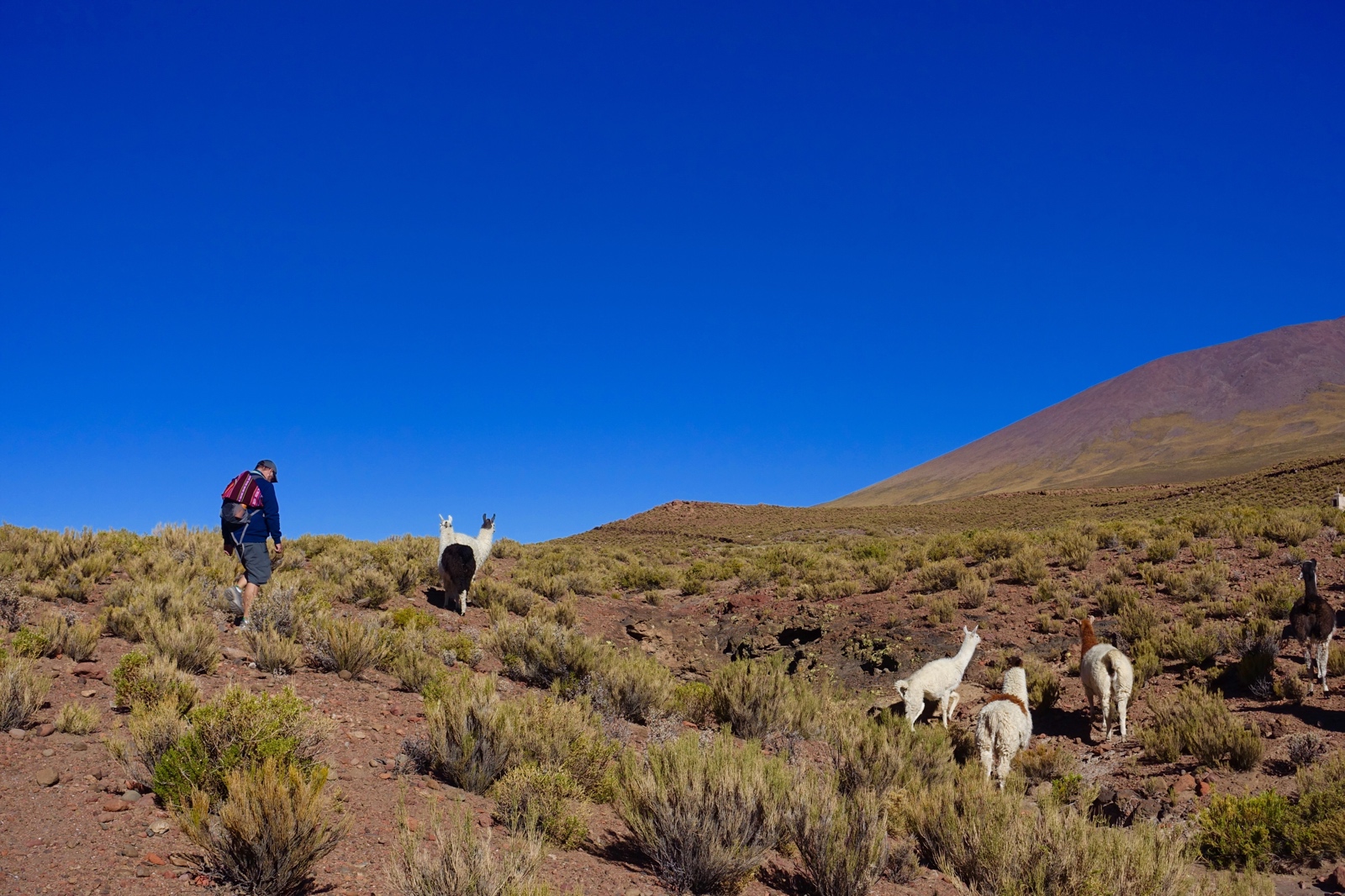 We spent one morning herding llamas as they set out to feed on local plants. Glenn was chasing down two rebel llamas here.