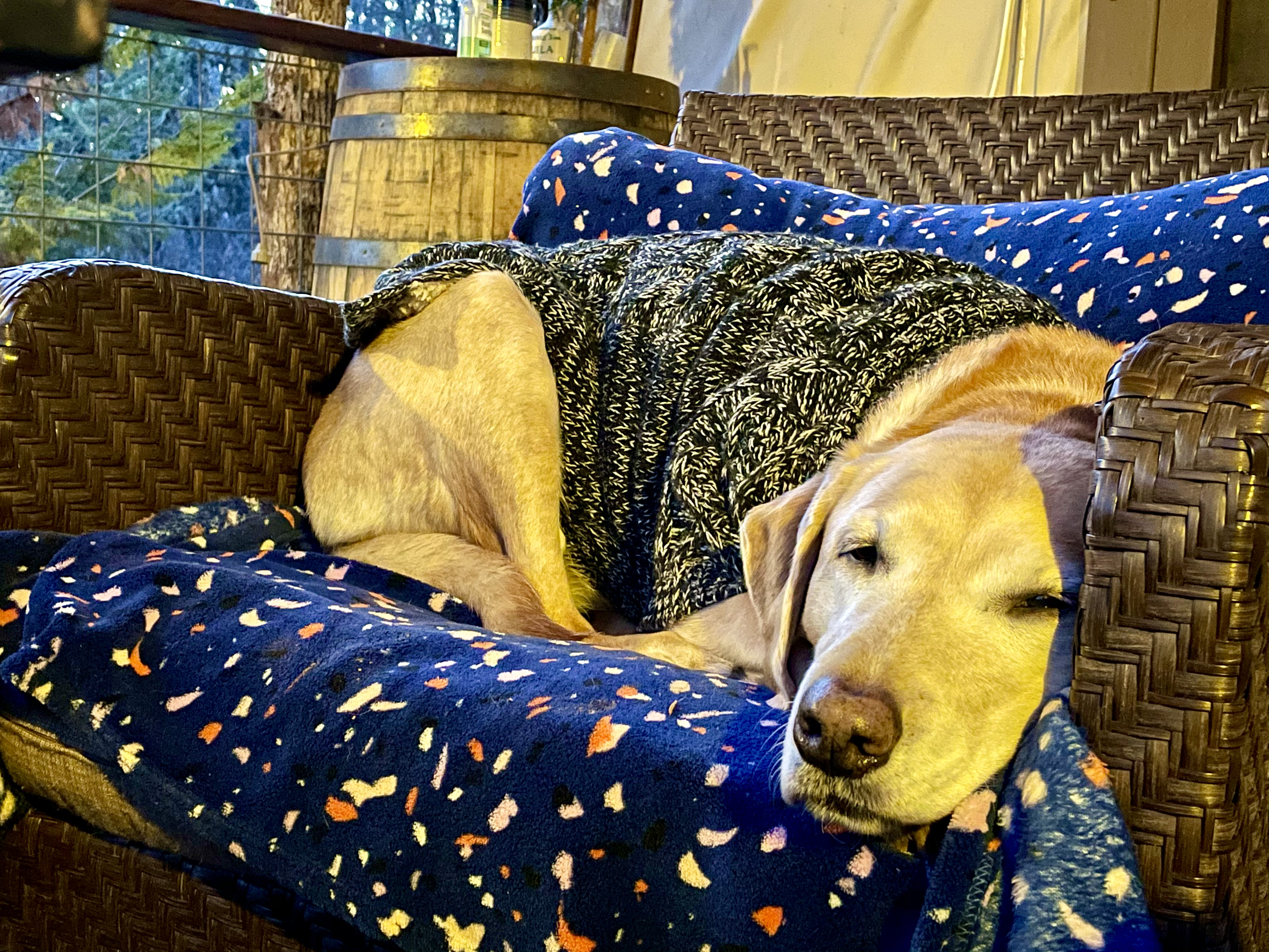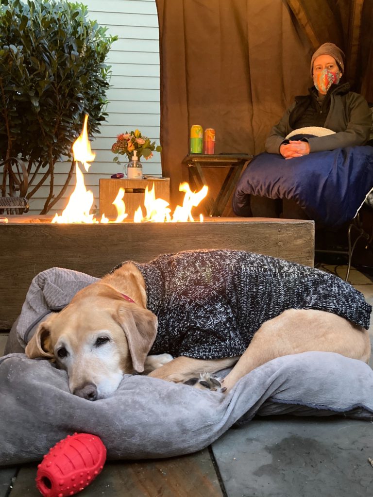 Also in our backyard, Glenn and I constructed what we call the “COVID Tent” in an attempt to mentally and emotionally make it through the dark and rainy Portland winter by enabling outdoor, physically distanced socializing.