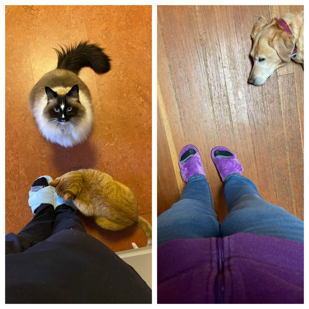 Sometimes it’s just been little random connections that bring me joy. Like the time my friend Alisa and I realized we had basically the same exact view at the same exact moment (complete with black-toed socks and fuzzy slippers).