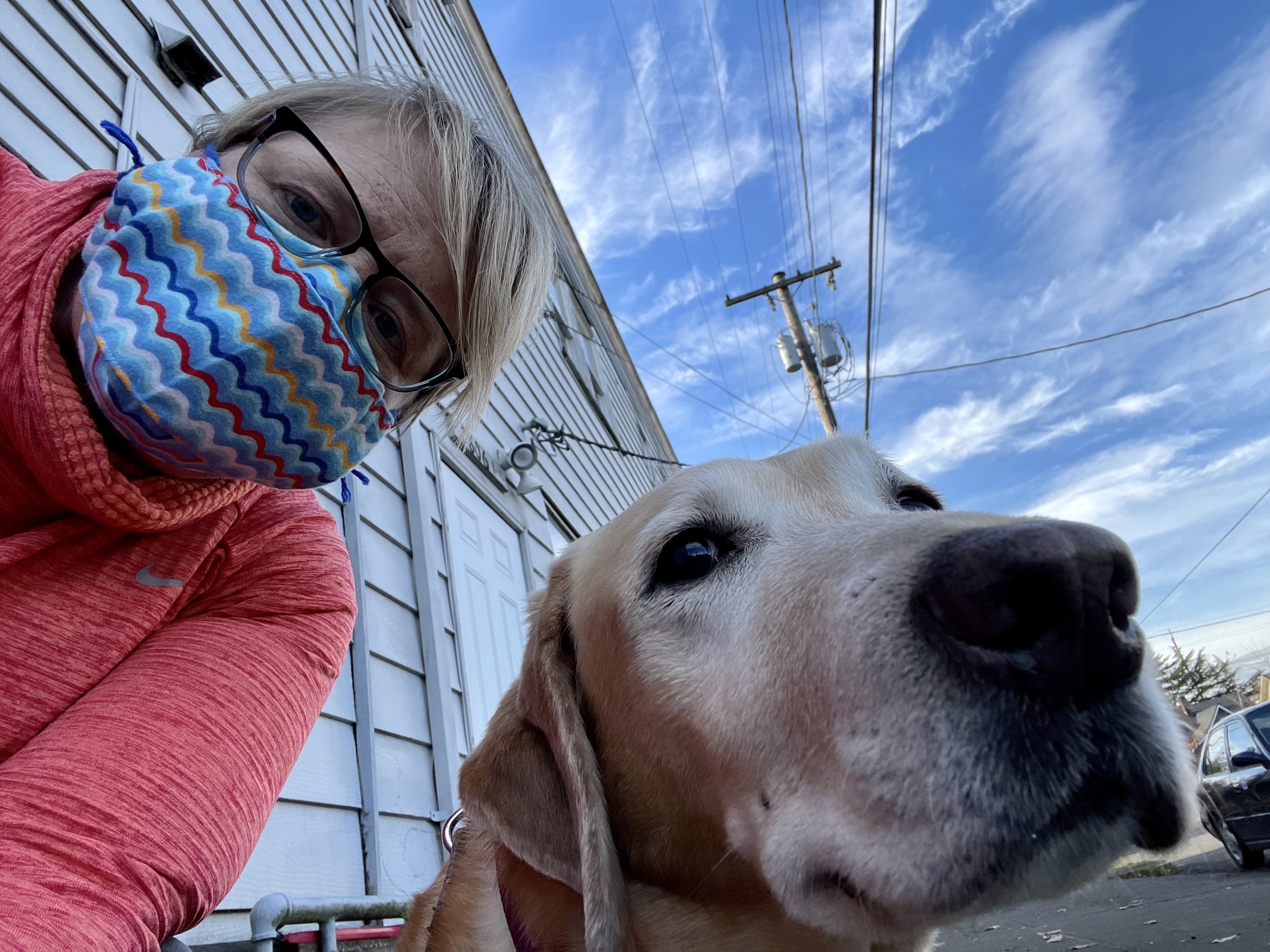 My friend Alisa was my first guest and I’ve since had several people (one or two at a time) over to catch up. Honeydew is always on hand to supervise and make sure everyone is following COVID-safety guidelines.