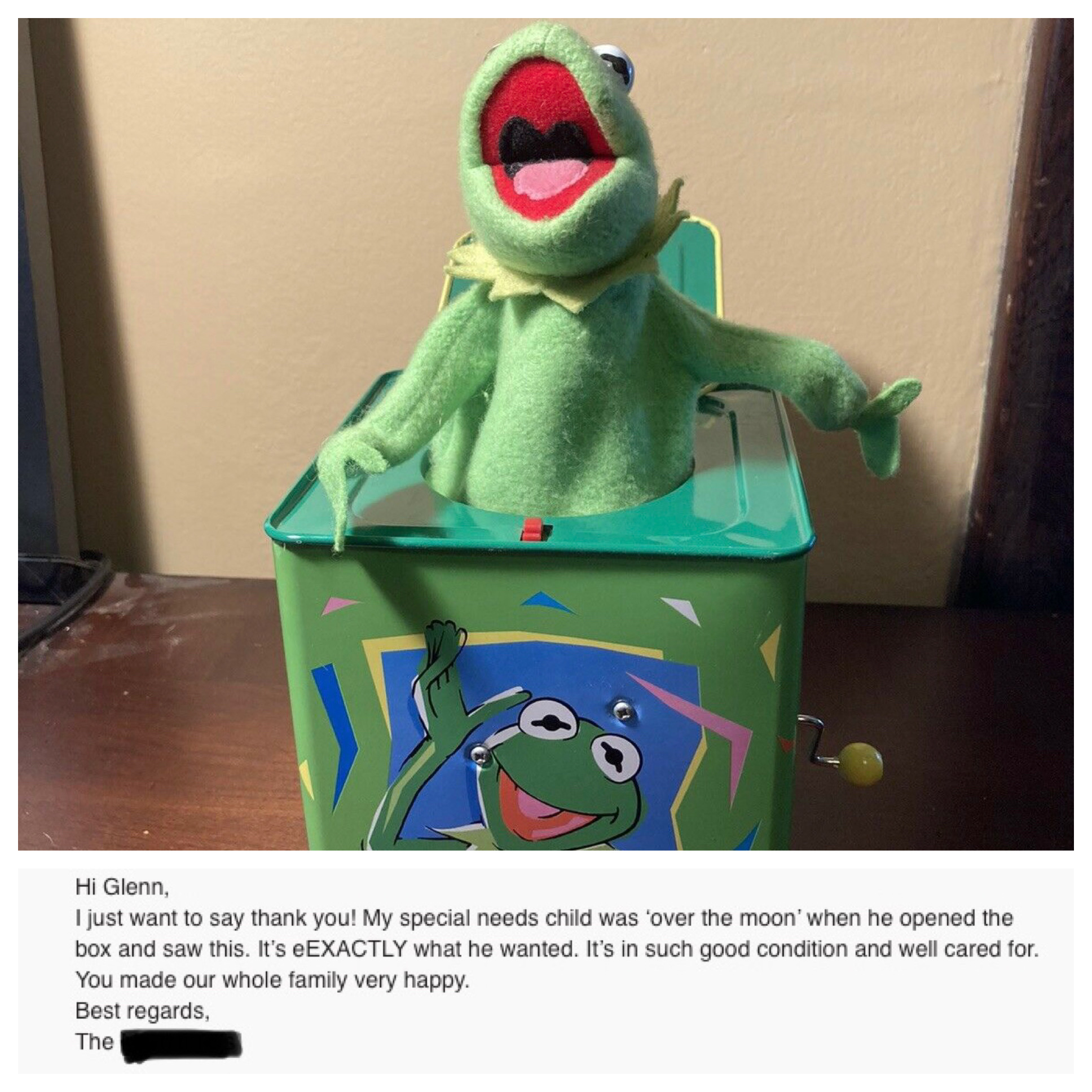 I thought about this as I gave Glenn the okay to sell my Muppets stuff. Wouldn’t you know, those items are now out bringing joy to others rather than growing musty while crammed in a box in my basement for decades to come. Below is one of several such messages Glenn has gotten from those that adopted my stuff.