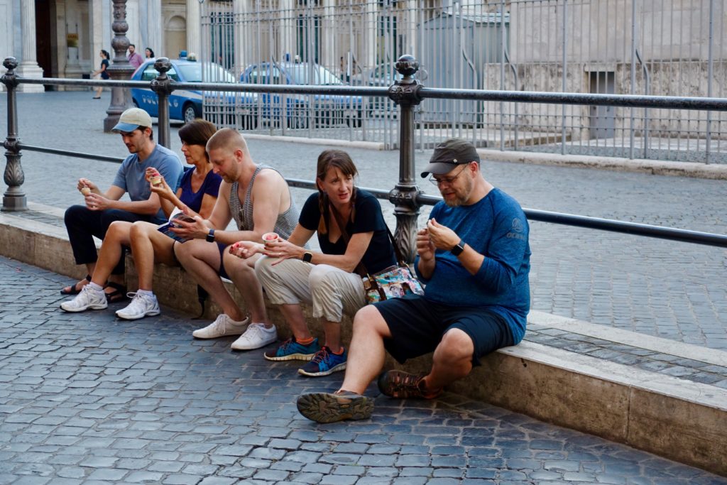 Following our time in Turin I traveled with several of my work friends to explore Rome. The crowds of tourists there quickly overwhelmed me. I knew that was going to be the case before I got there. “Suffering through the heat and crowds” is a common refrain you read about in any guidebook or online travel forum about Rome. For our second full day in Rome, Glenn and I opted to join some friends on a day-trip to Pompeii, if for no other reason than to escape the city crowds (turns out there were crowds there too!). My favorite memory of my time in Rome wasn’t seeing the Roman Colosseum or the Spanish Steps, but it was finding respite and sharing a home cooked meal with my fellow travelers in our quiet apartment at the end of the day (thanks for an amazing dinner Leah!).