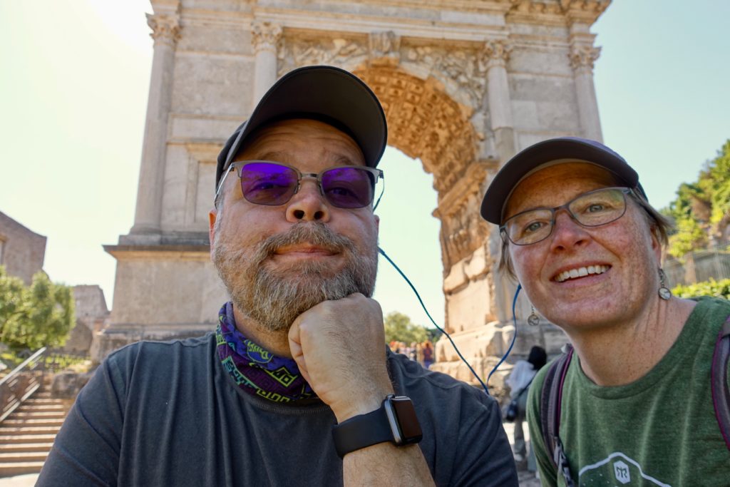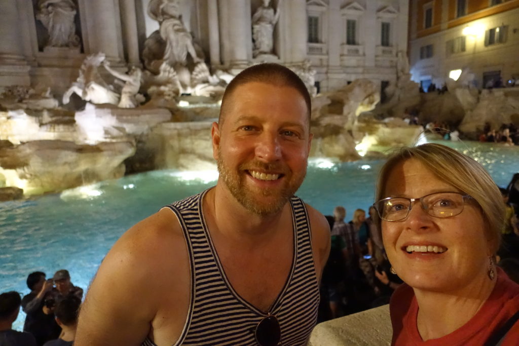 I was envisioning a “Sleepless in Seattle” sort of reunion (insert emotionally uplifting rom-com-style movie music here) with the crowds parting as we ran into each other’s arms. In reality, Glenn was disoriented, exhausted and sweaty after 18 hours of travel. We nearly missed each other in the crowded Rome train station while trying to avoid pickpockets and being bowled over by witless tourists lugging 400-pound suitcases to and fro.