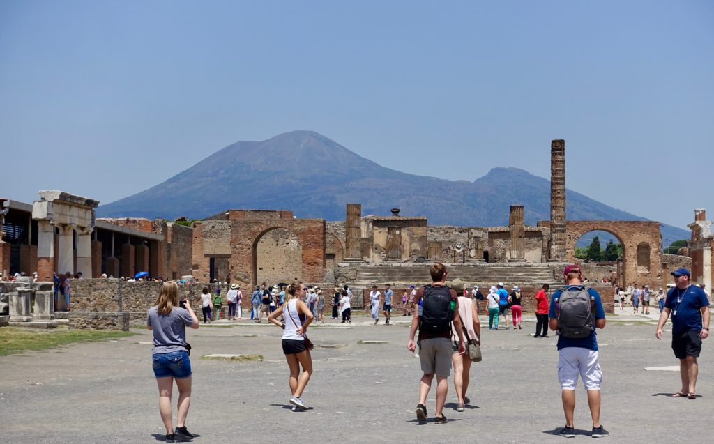 Mount Vesuvius, as seen from the main plaza in Pompeii. Imagine what this scene looked like in 79 AD when the famous eruption happened. It’s still an active volcano, last erupting in 1944.