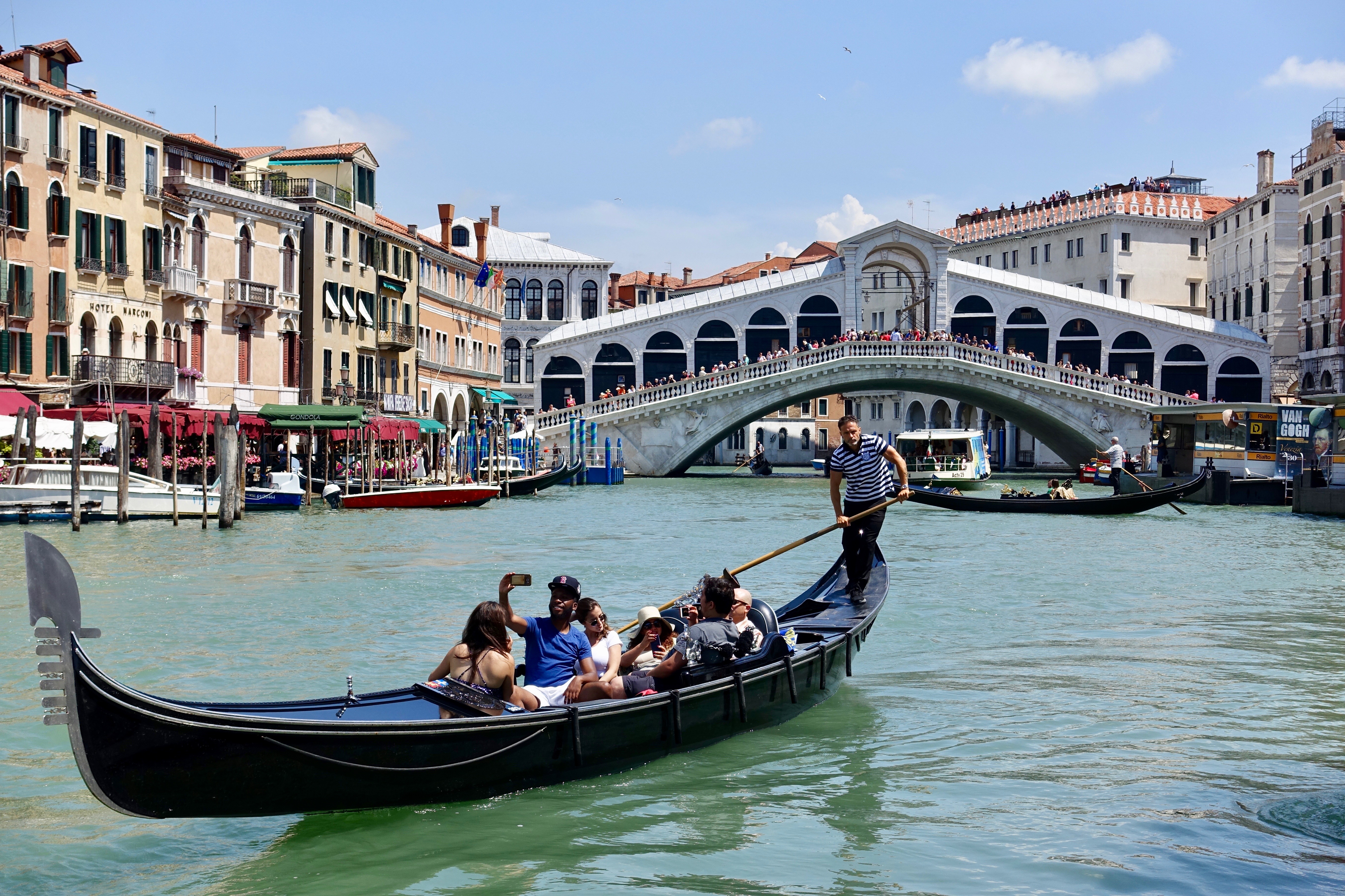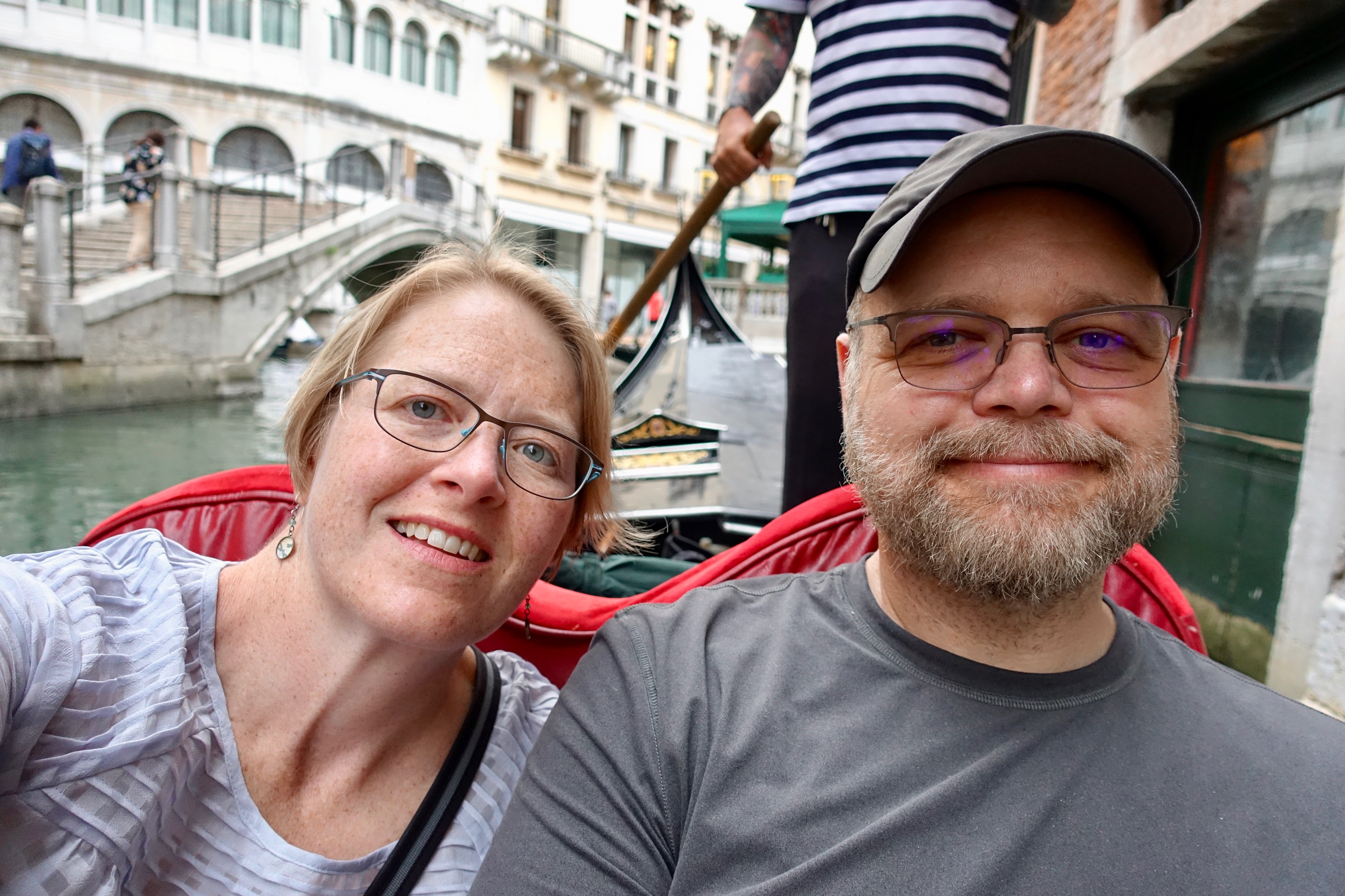 We also got to learn some of our gondolier’s personal story, which was fascinating. There are about 400 licensed gondolas in Venice, and all of the gondolas are beautiful, handmade and privately owned. The licenses to operate are limited in number and are a prized possession that is often passed down from fathers to sons for generations. Our gondolier’s uncle passed down his gondola license to him, and he plans to pass it down to his daughter. Our guide was surprised by this and commented as such. The gondolier laughed and assured us that his daughter wouldn’t become a gondolier (apparently, a penis is required to have any hope of successfully steering a boat?!?), but she could hire a gondolier to run her boat for her…and then take 80 percent of his profits. Better than nothing, I guess? I enjoyed getting a little glimpse into the inner-workings of the iconic gondola scene in Venice.