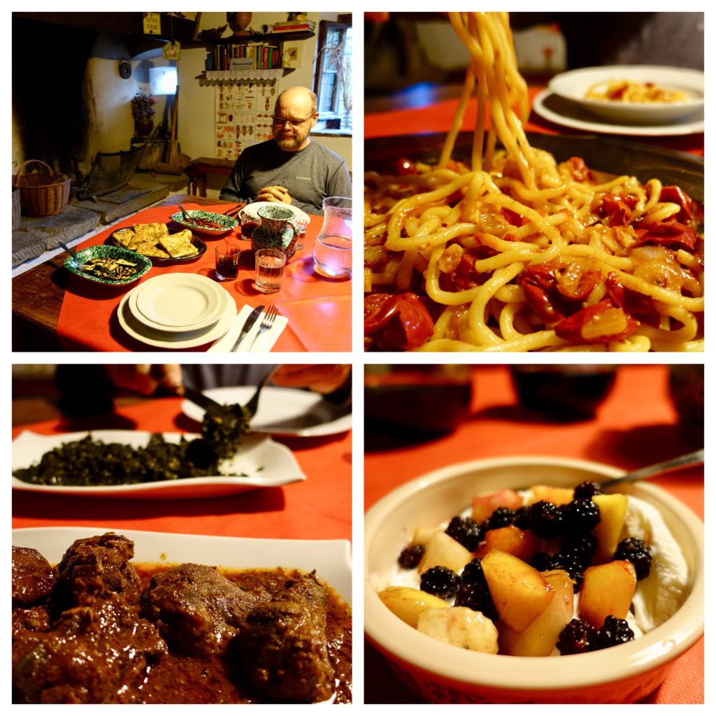 Before leaving for the trip my friend Alisa suggested we look into visiting an agriturismo. “An agri-what?” I responded. I did a little online research and discovered a magical world of old farms dotted across the Italian landscape that welcome overnight visitors. Depending on the farm, you can do everything from relaxing by the pool, to riding horses, milking cows, feeding goats, harvesting olives or making cheese. Nearly all of them offered traditional home-cooked meals, often prepared from food grown or raised on the farm. After the crowds and tourist sites of the cities, it was a true joy to find ourselves as the only guests at a farm several miles up a potholed dirt road in the Tuscan countryside.