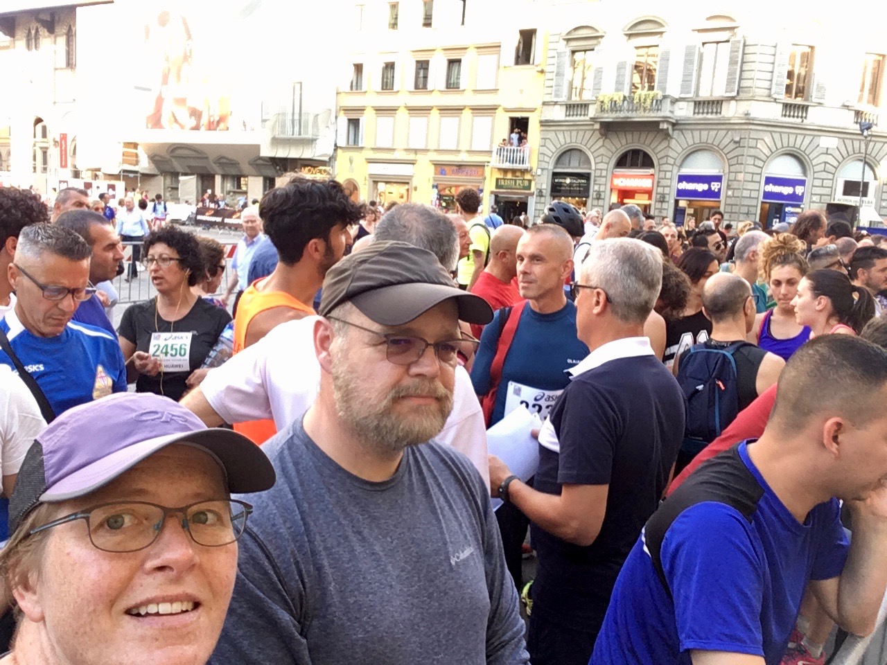 That moment when you realize that Italian runners don’t wear ball caps. Can you spot the Americans in this photo?