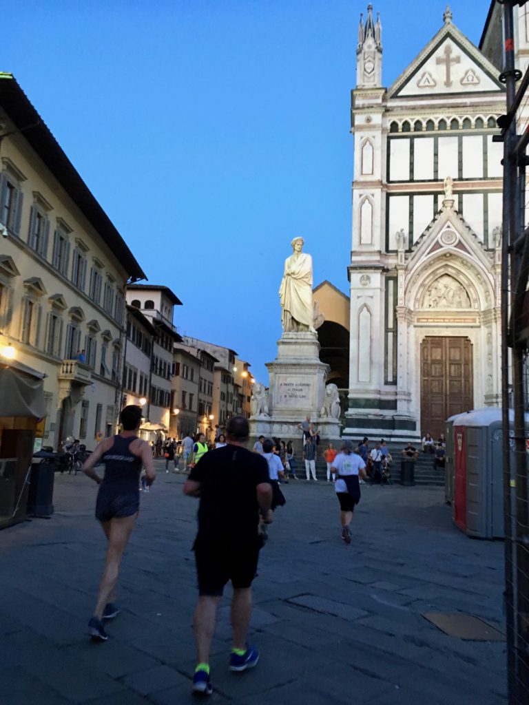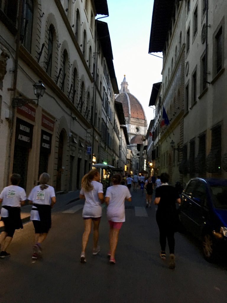 Glenn discovered there would be a night race through the streets of Florence when we were there, so he signed us up…in Italian. Given the language barrier (Google Translate can only do so much), we weren’t entirely sure what we signed up for but trusted we’d figure it out when we got there. The event welcomed thousands of Florentines, a handful of Australians, and seemingly only two Americans (me and Glenn). The roads and major plazas were closed to all but the racers, which had the effect of pushing the hordes of tourists to the edges. It was a privilege to be in the middle of all of those Italians as they reclaimed their city streets, if only for a couple of hours.