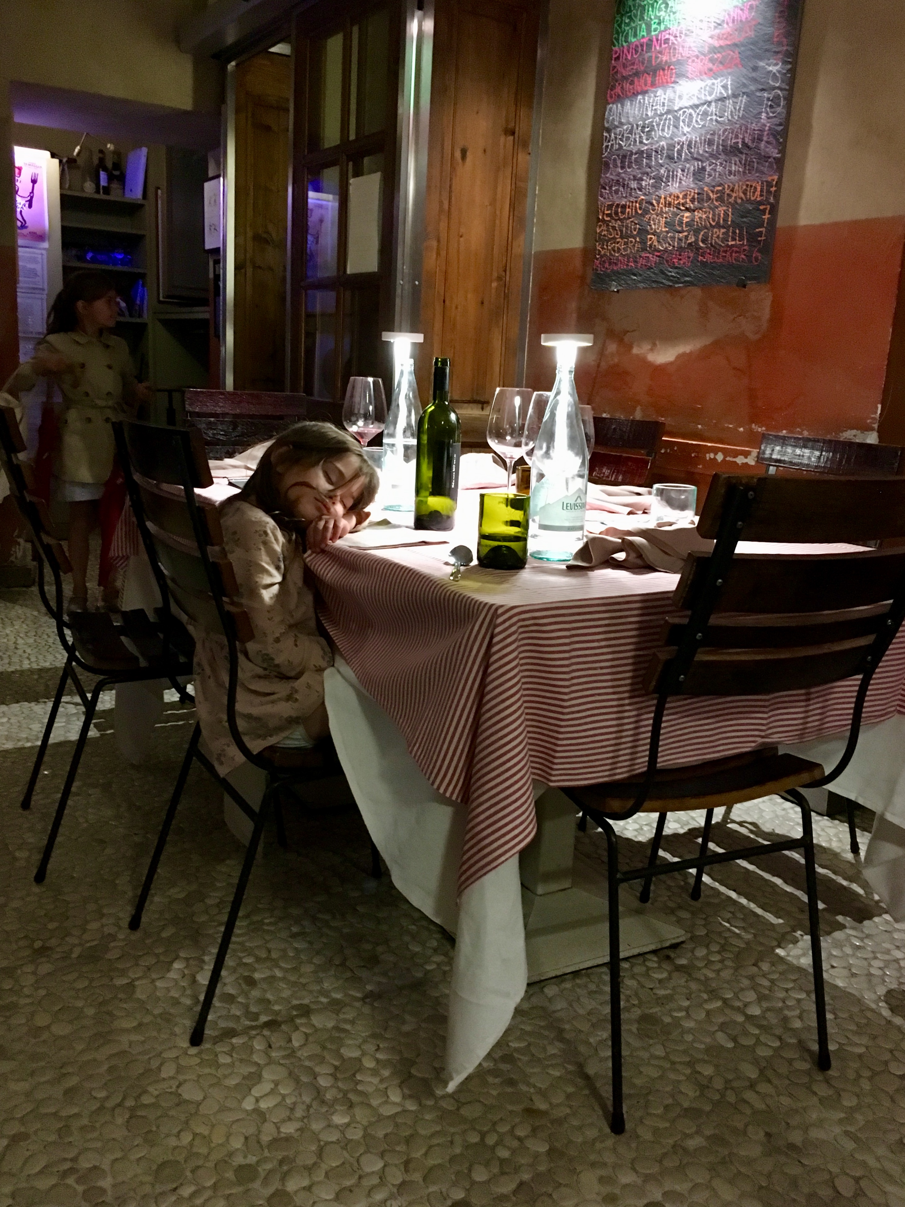 Italians eat dinner around 8 PM, which made for a late night for this little girl (and me!). She slept like this through the entire meal. Adorable.