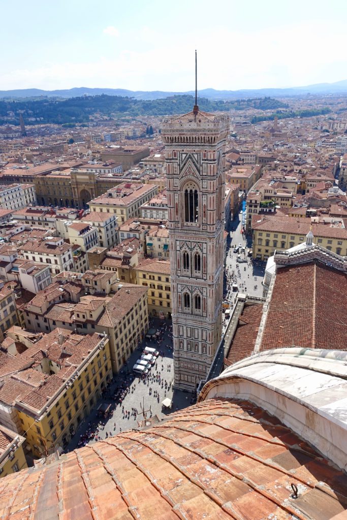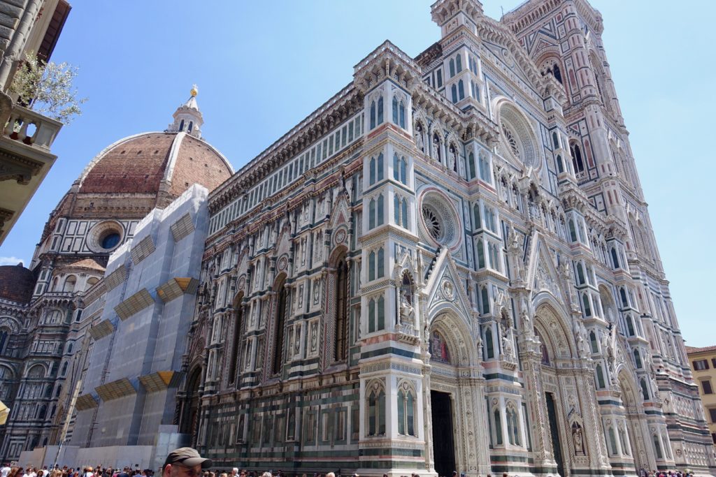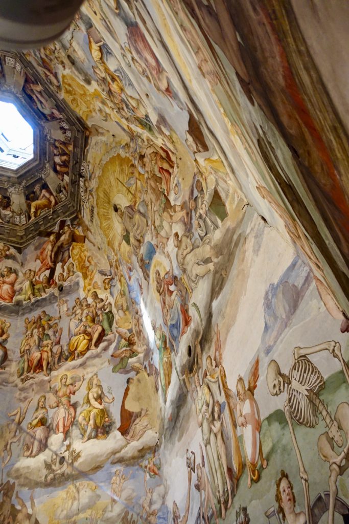 We also climbed to the top of Brunelleshci’s Dome of the Florence Cathedral – which provided an closeup view of the frescos painted on the inside of the dome (the depictions of Hell are quite twisted!), and an amazing 360-degree view from the outside of the dome. I like to think of myself as fearless…but I need to admit that I’m more than a little claustrophobic. The hike through the twisting narrow passageways to the top of the dome almost did me in!