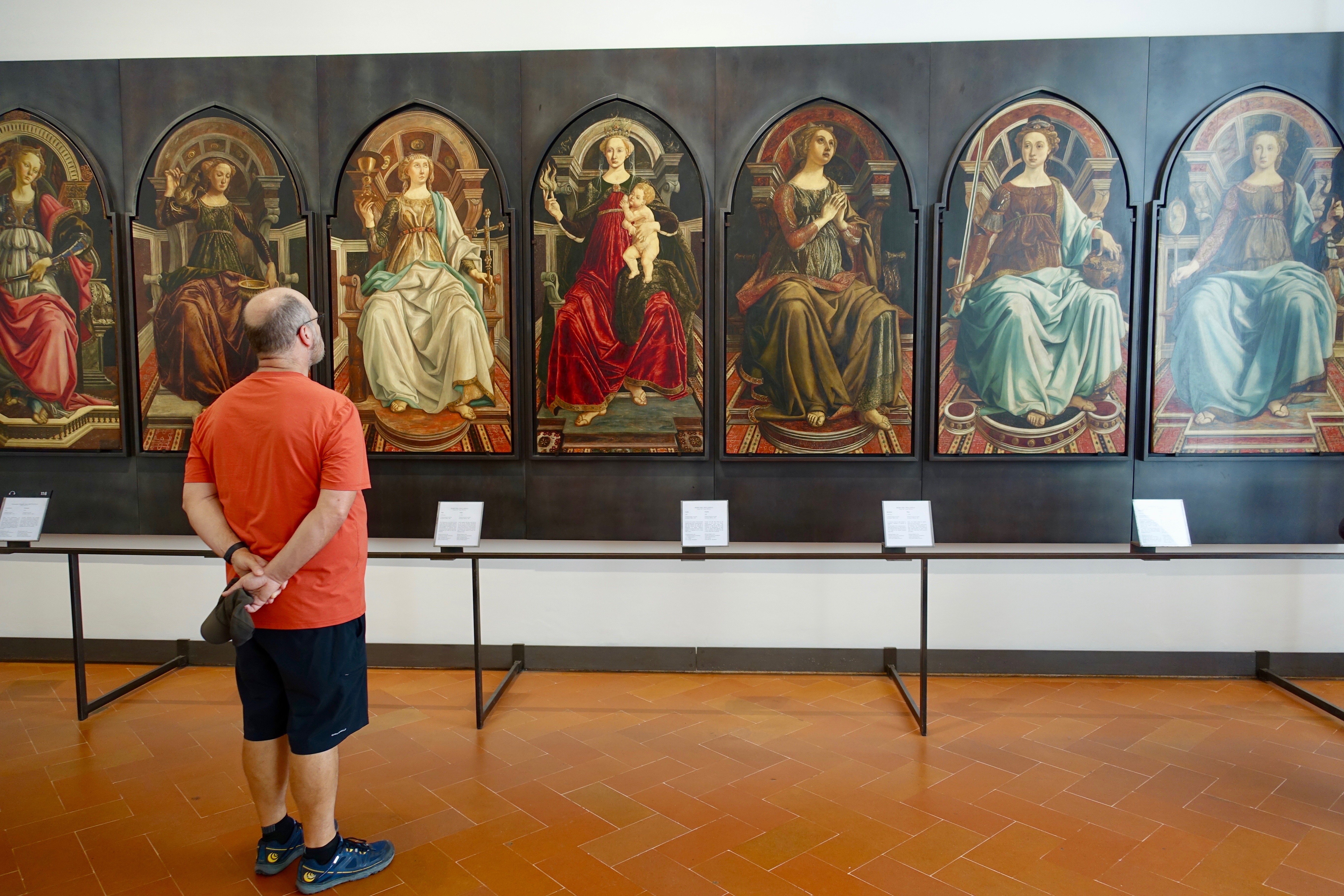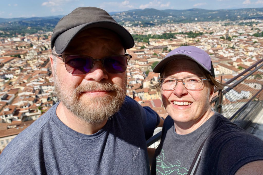 By the time we reached Florence we were exhausted — but we pushed on and spent a couple of days battling the crowds to see the sites, including various art museums. The art was interesting…but if I never see another painting of the “Madonna and Child” it’ll be too soon.