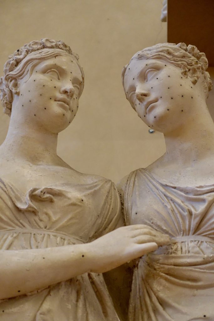 There were rooms full of plaster statues like these. Glenn and I finally realized these were the models used by the artists to carve the real ones out of stone. The little dots were used to scale the proportions up to the larger size of the final stone version.