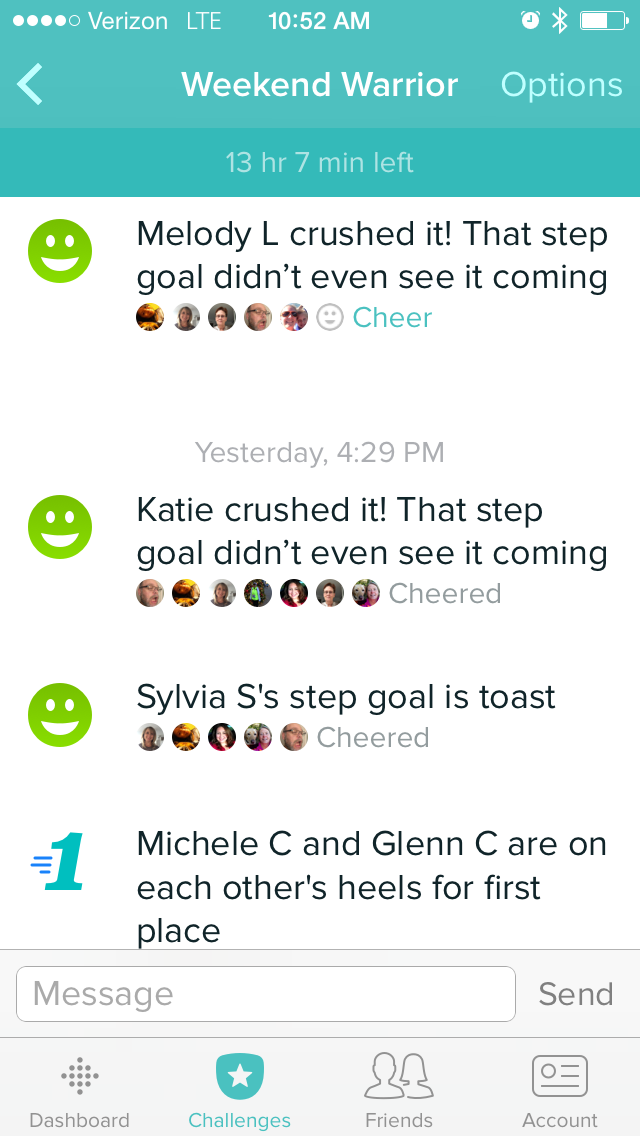 But even more than the friendly competition, I have enjoyed watching them all push themselves to get more steps this week than they did last week. I’ve found inspiration in how we cheer each other on – all day my phone lights up with positive messages as challengers meet and exceed their goals.
