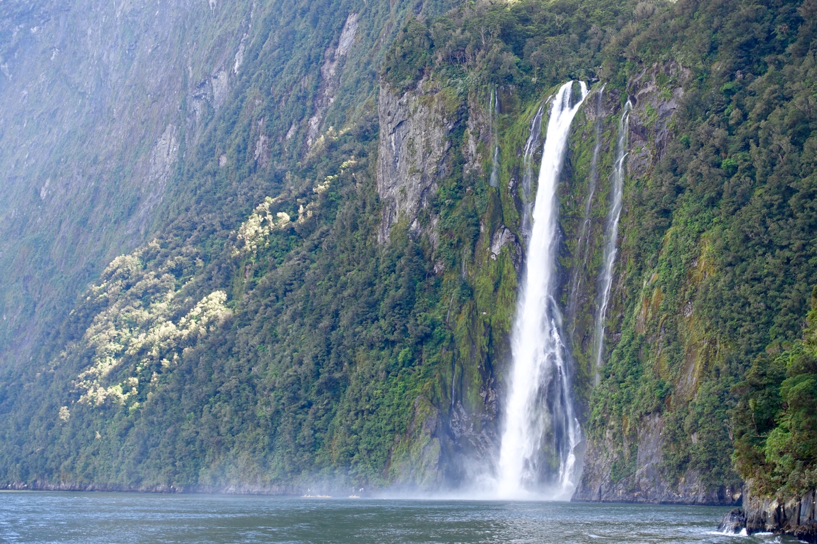 Milford Sound, which is only accessible by boat or sightseeing plane/helicopter boasts spectacular cliffs and mountains coming straight up out of the water. It reminded me of the Columbia River Gorge (Oregon and Washington), but on a much grander scale.