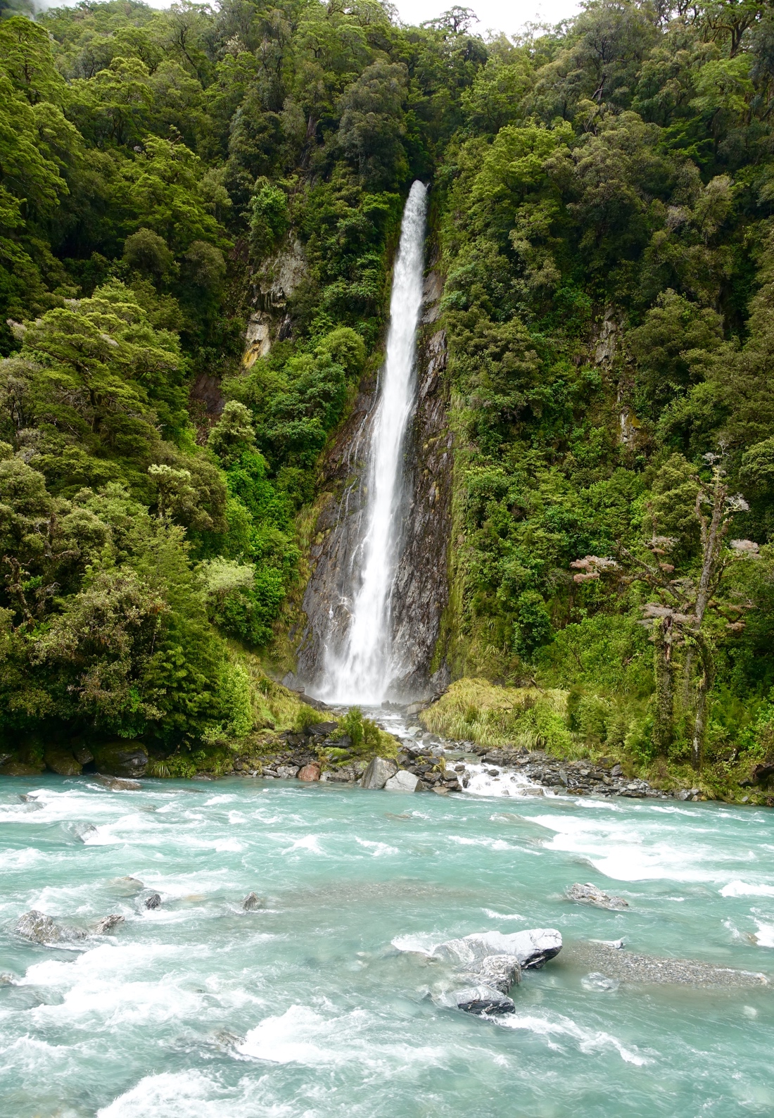 While making our way over Haast Pass we stopped to see Thunder Creek Falls. It was a fast stop, however, as the sand flies nearly ate us alive. Vicious wee beasties!