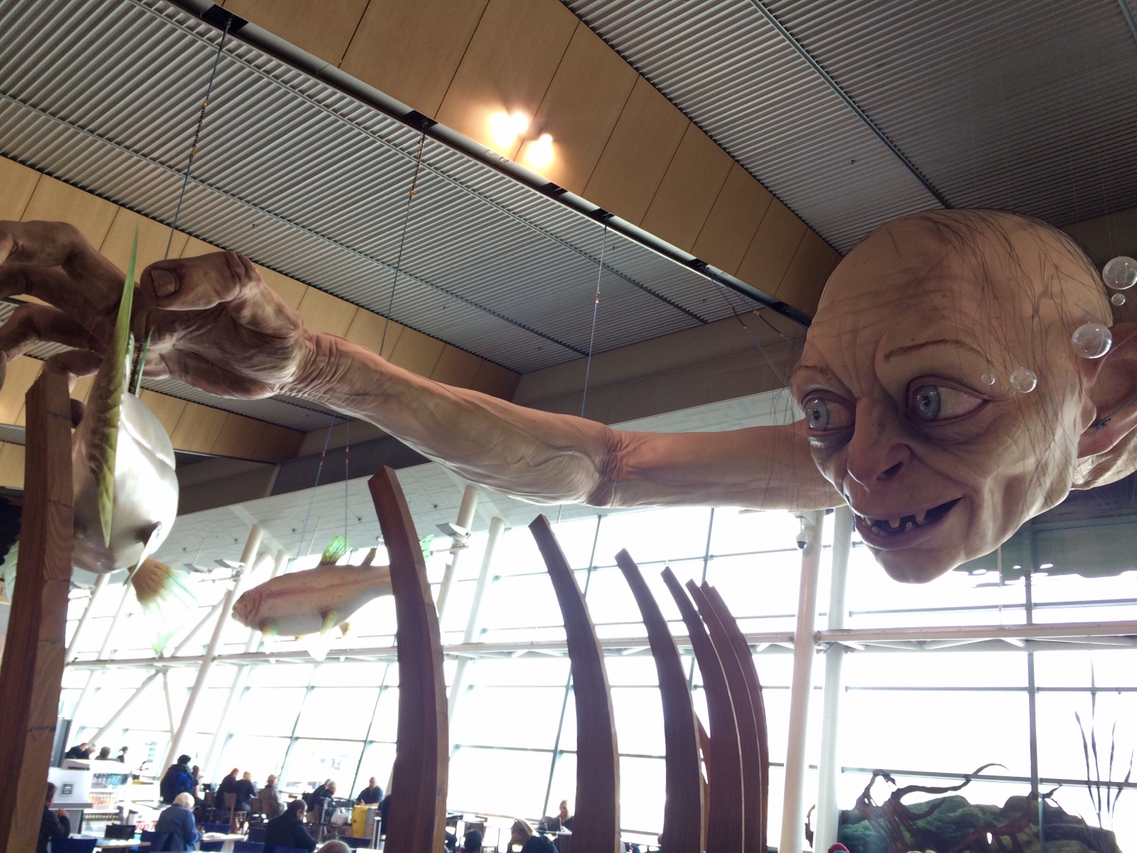 Unfortunately, no photos were allowed inside of the Weta Workshop but the amazing talent of their artists are featured all over town, including this fantastic Gollum that greets you at the Wellington airport…