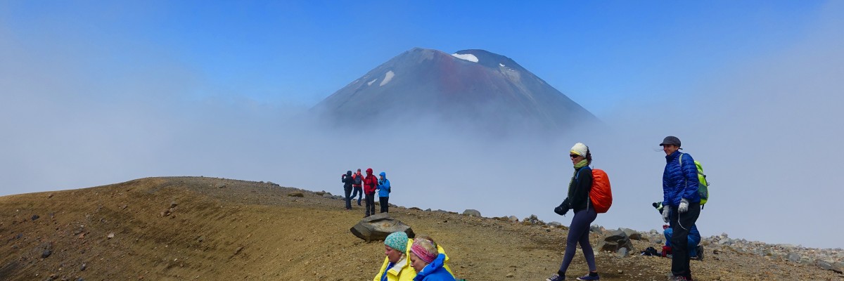 Mt. Ngauruhoe finally showed itself, for just a few seconds, before being enveloped in the clouds once again. Unfortunately we had no sightings of Frodo and Sam climbing up the side.