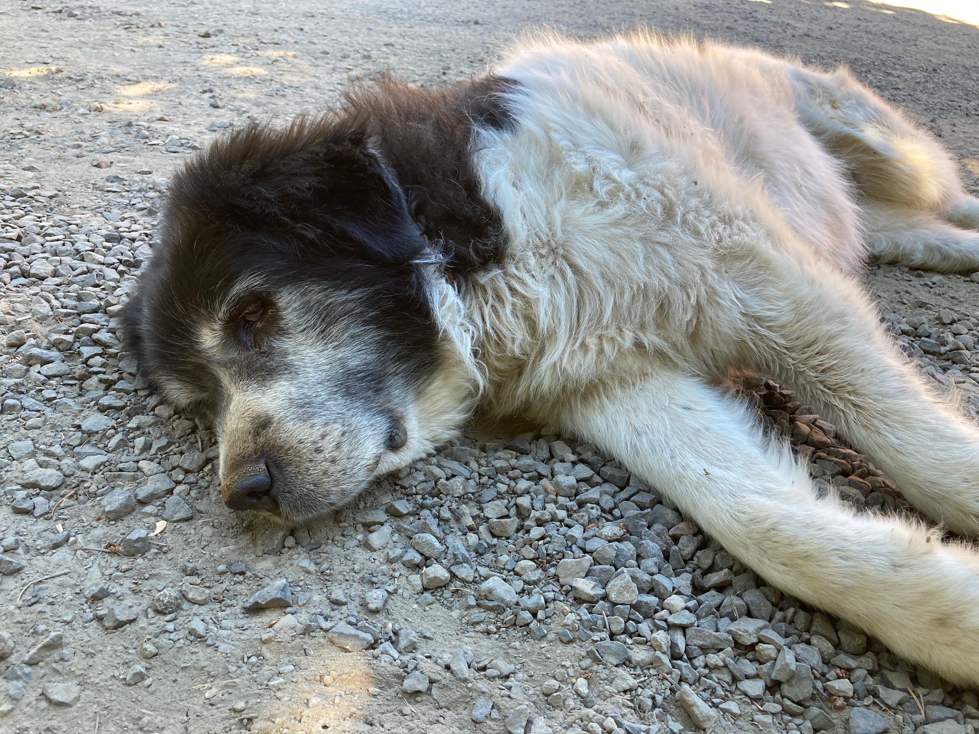 “Chevas” – a Great Pyrenees that serves as the livestock guard dog…resting up before a long night of work (lots of coyotes and cougars in the area).