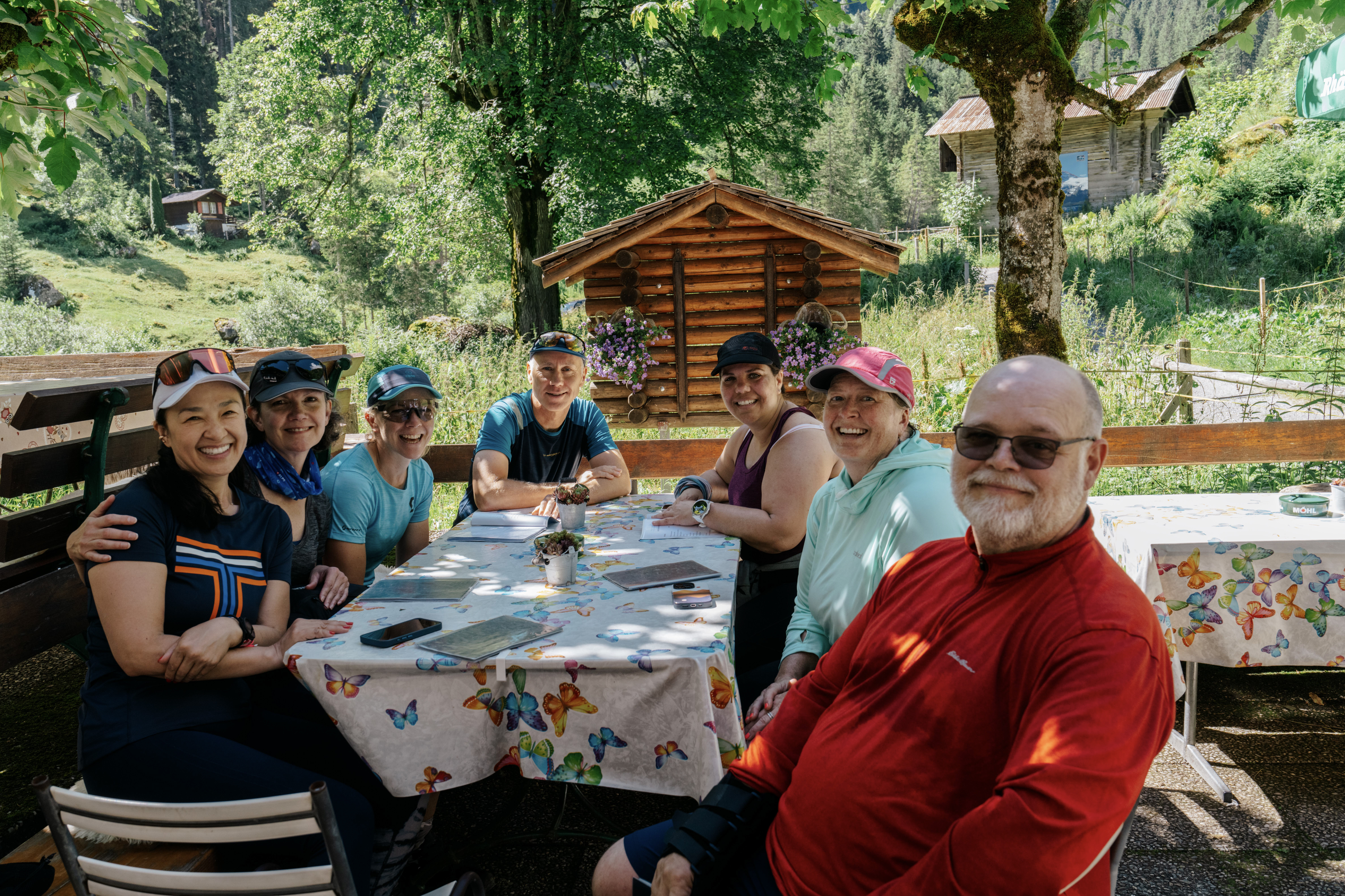 Mirna worked with them to come up with challenging – yet doable – itineraries that included lots of options to help participants fully enjoy the experience. For example, they offered longer and shorter trail route options, and utilized trains/cable cars/gondolas/funiculars/zip-lines to get us up or down steeper sections. And trust me, in the Alps, there’s ALWAYS steeper sections!