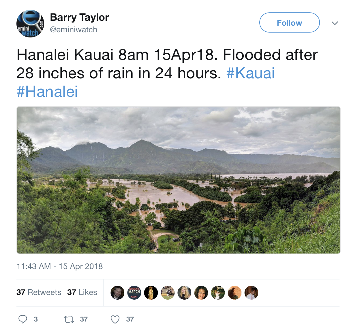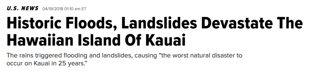 It shouldn’t come as a surprise then, to learn that just weeks after we visited Kauai, Hawaii, they are experiencing the worst rain, flooding and landslides they’ve ever had…which is saying a lot for an island that is one of the wettest places on earth. In two days they got the equivalent amount of rain that Los Angeles gets in two years! The “worst natural disaster to occur on Kauai in the last 25 years” one article said.